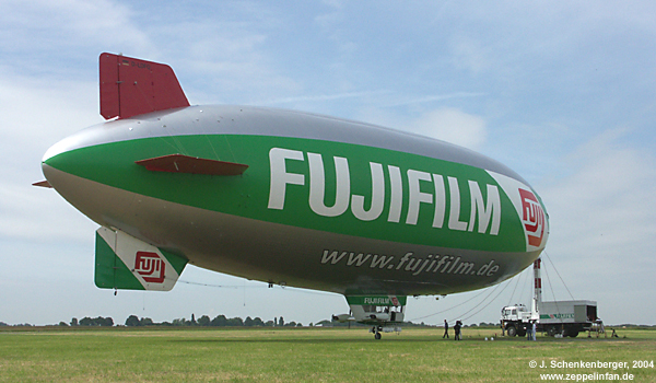Der "Fuji"-Blimp der WDL am Mastwagen kurz vor seinem ersten Aufstieg im Jahr 2004.
