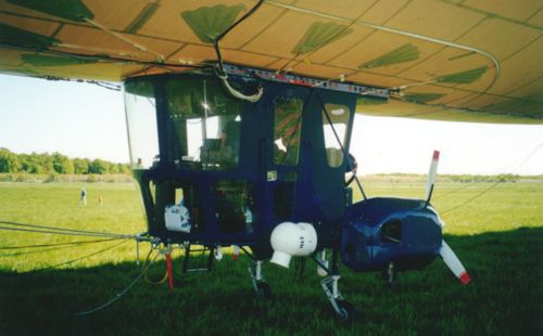 Die Gondel mit dem Flir - Kamera-System (weisse Kugel).